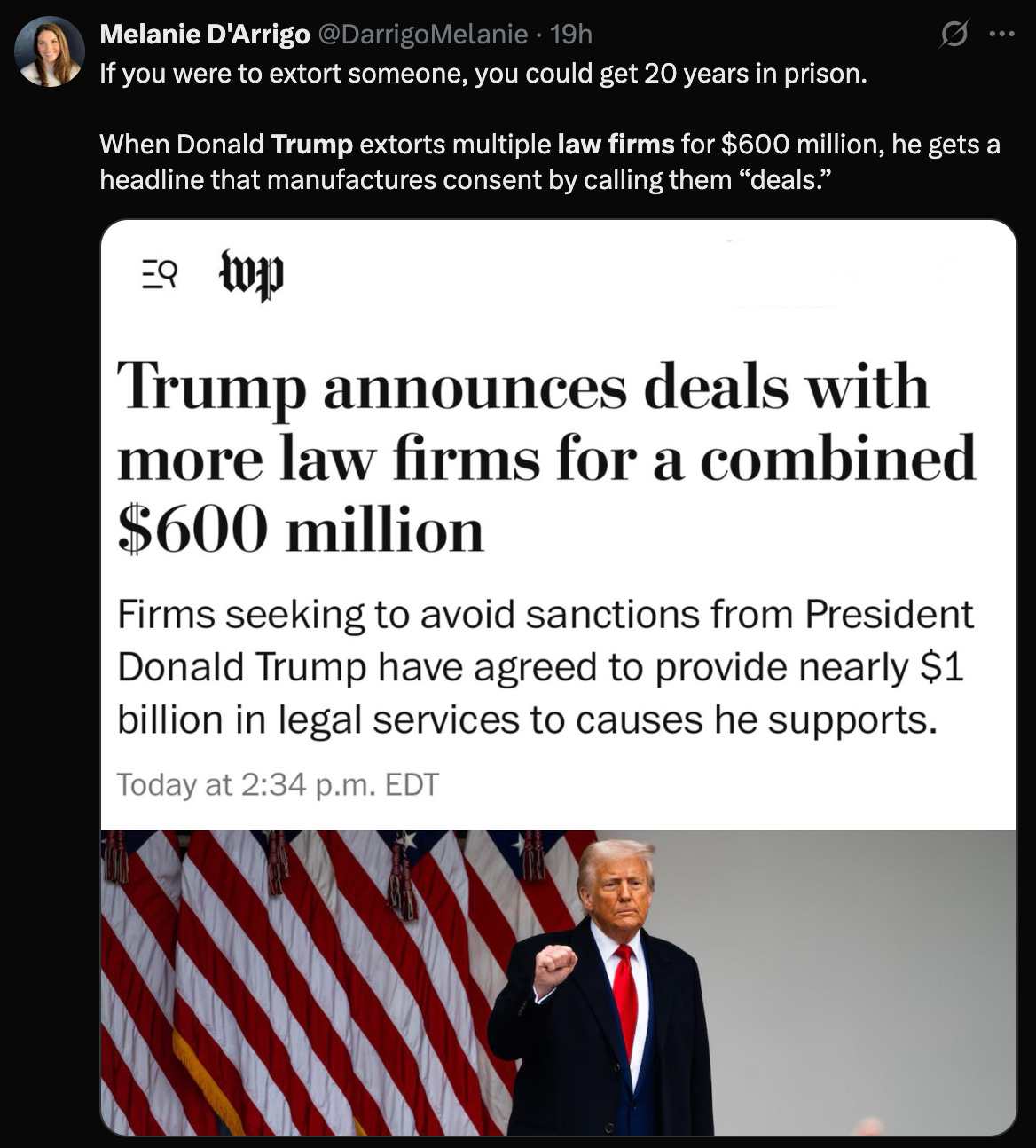 America’s not Russia or China yet, but the slide is real and Trump is using the full weight of the American judicial and Legal system, along with his. We’ve got to call it out, loud and clear. Share this story. Talk about it. Demand better. Because if we don’t, the “or else” Trump’s promise might become our reality.