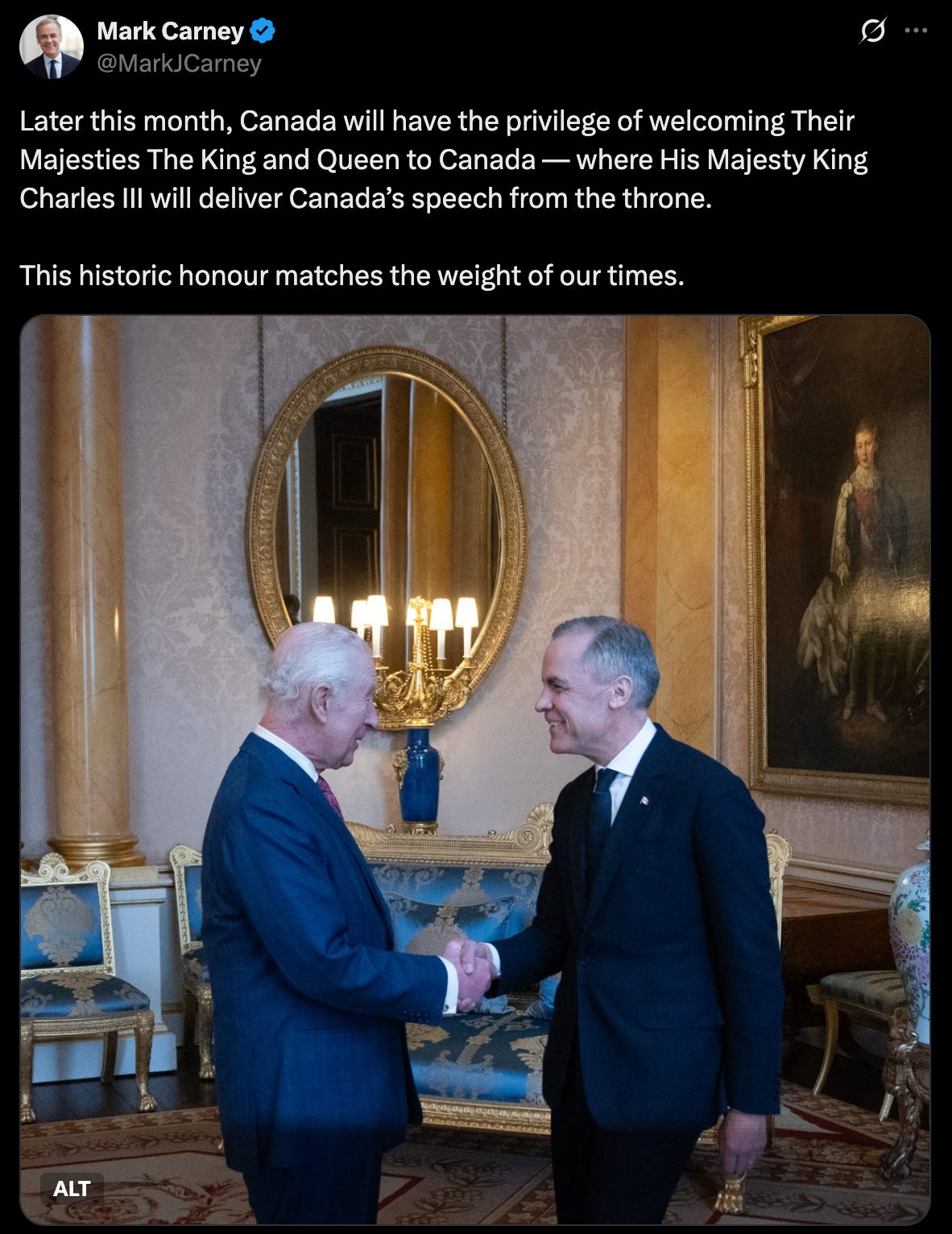 In a power move nobody saw coming, Carney announced King Charles will deliver the Speech from the Throne in Ottawa on May 27. It's a symbolic sledgehammer to Trump’s “51st State” talk. Carney’s lead-up to the King Charles Throne Speech announcement also cited the swiftness of every party in accepting the election results and lining up behind a sovereign Canada led by Carney in a shot at Trump’s “Big Lie”. It’s must-watch...