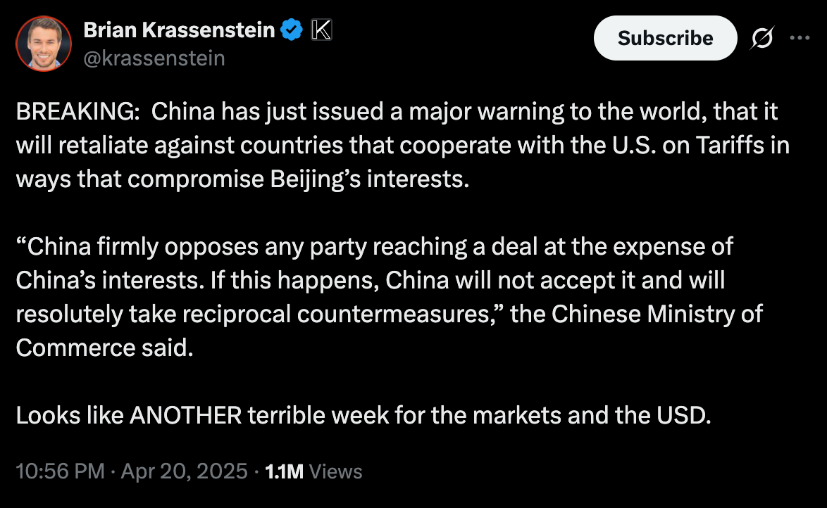 The numbers don’t lie: Trump’s tariffs have unleashed chaos. The U.S. dollar, once the world’s safe haven, is getting dumped like a bad ex. Investors aren’t just selling stocks—they’re unloading Treasuries and the dollar too, a rare trifecta that screams, “We’re done with America.” China, the U.S.’s sugar daddy for debt, is quietly scaling back on Treasury buys, and whispers of a bond dump are spooking the hell out of Wall Street. If that happens, kiss cheap borrowing goodbye—Uncle Sam’s credit card bill’s about to skyrocket.