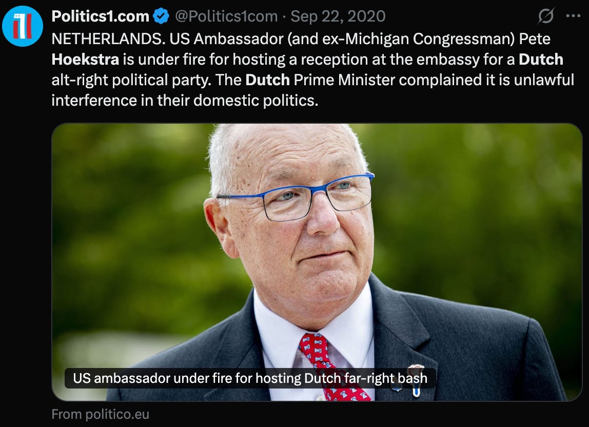 This isn’t diplomacy. This is sabotage in a navy suit by a dyed-in-the-wool MAGAT extremist who needs to leave this country, NOW. And rumor has it that expelling Hoekstra isn’t “off the table.”