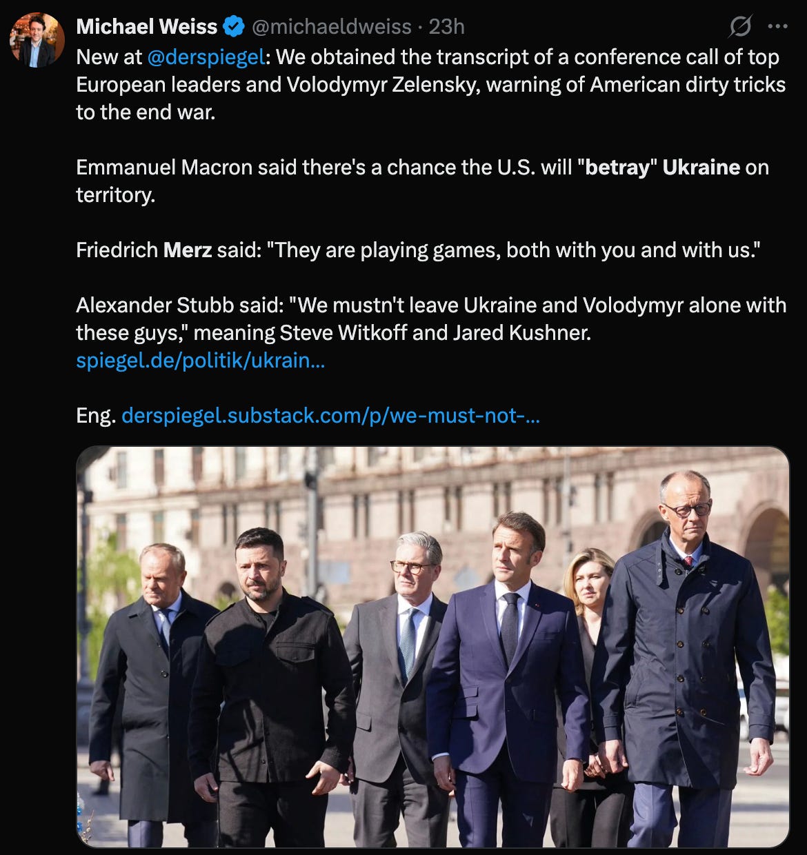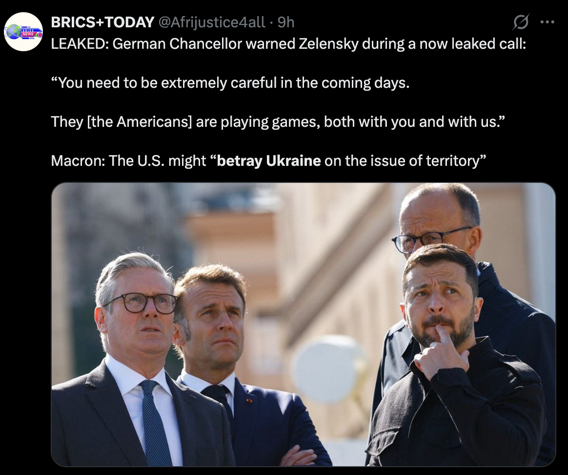 The two backbone countries of the European Union — the same ones who’ve spent 75 years depending on American leadership — just told Volodymyr Zelenskyy privately (and now, thanks to a leak, very publicly):