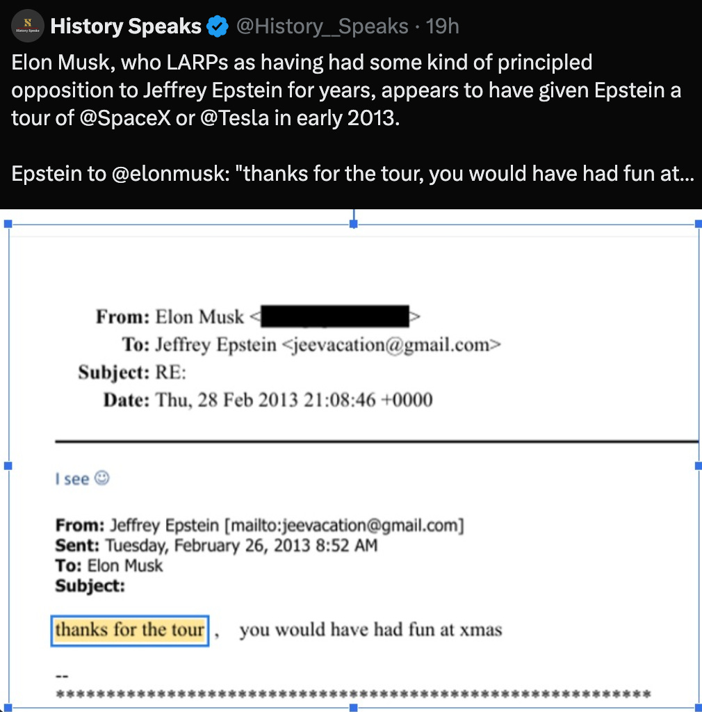 And yes — Elon Musk’s name appears in the Epstein records A LOT (excitedly so).