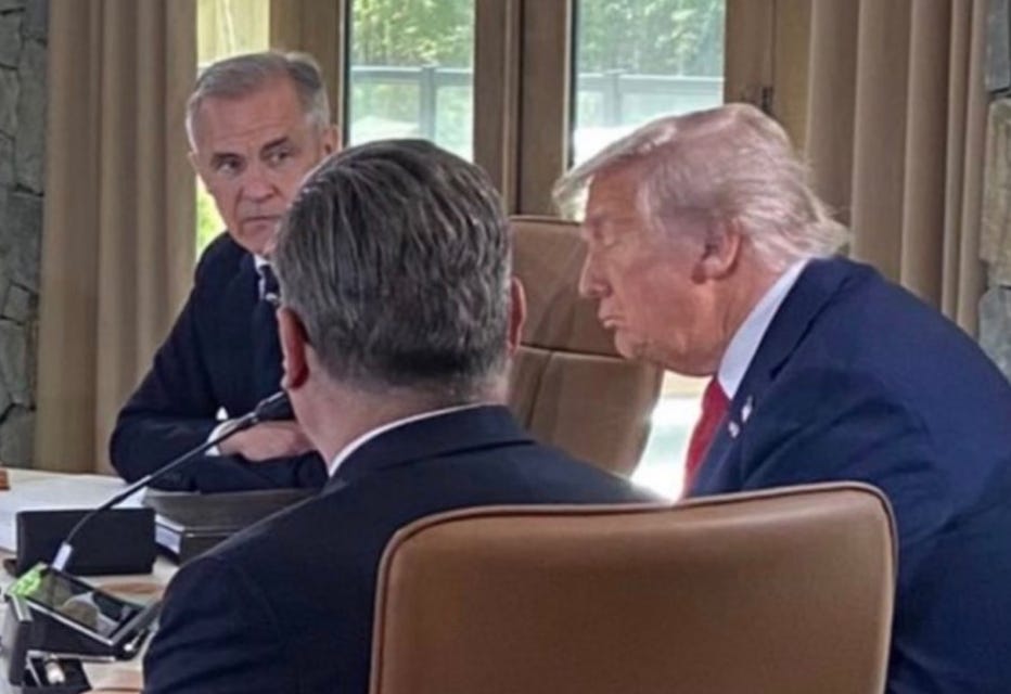 In the end, the 2025 G7 summit may be remembered less for its policy outputs (the Trump Regime did nothing other than show up for 10 hours) than for this almost Shakespearean spectacle. On one side, Donald Trump – a once-dominant figure now unraveling in real time, leaving allies and aides in equal parts alarmed and encouraged by the fact that President Dick Head might not make it through his term.