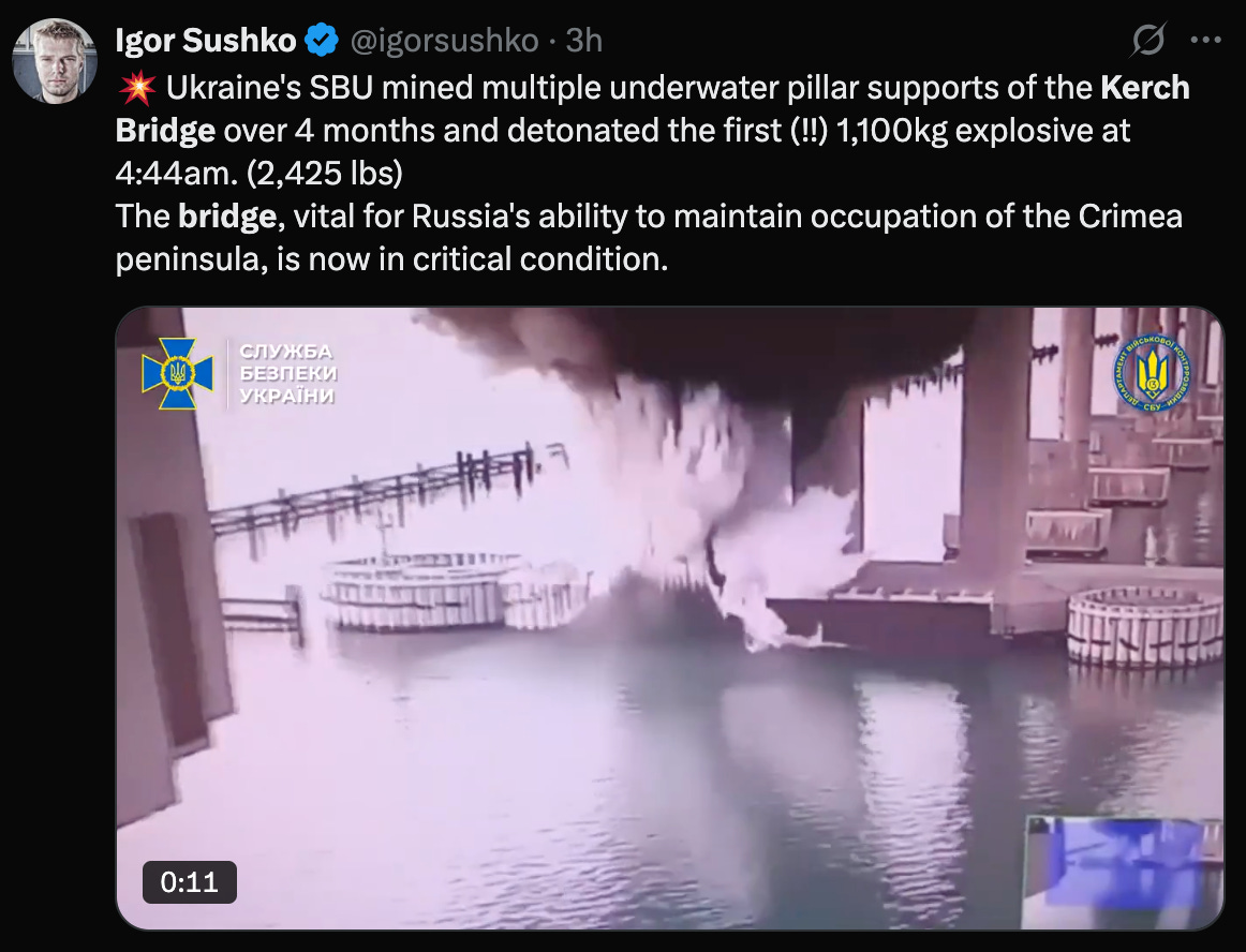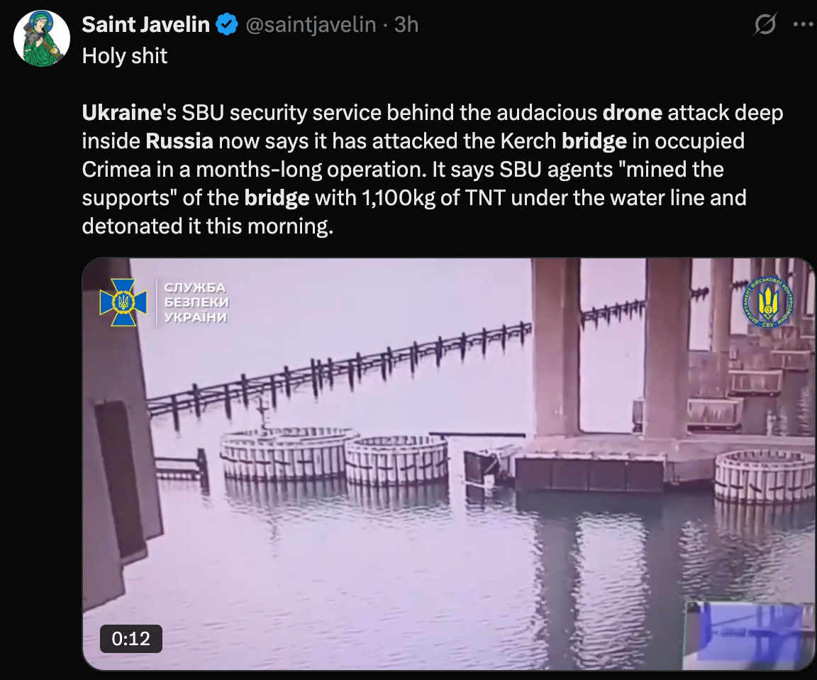 Kerch Bridge, 41 bombers destroyed. $10 billion in damage. Ukraine’s asymmetric warfare just went biblical.