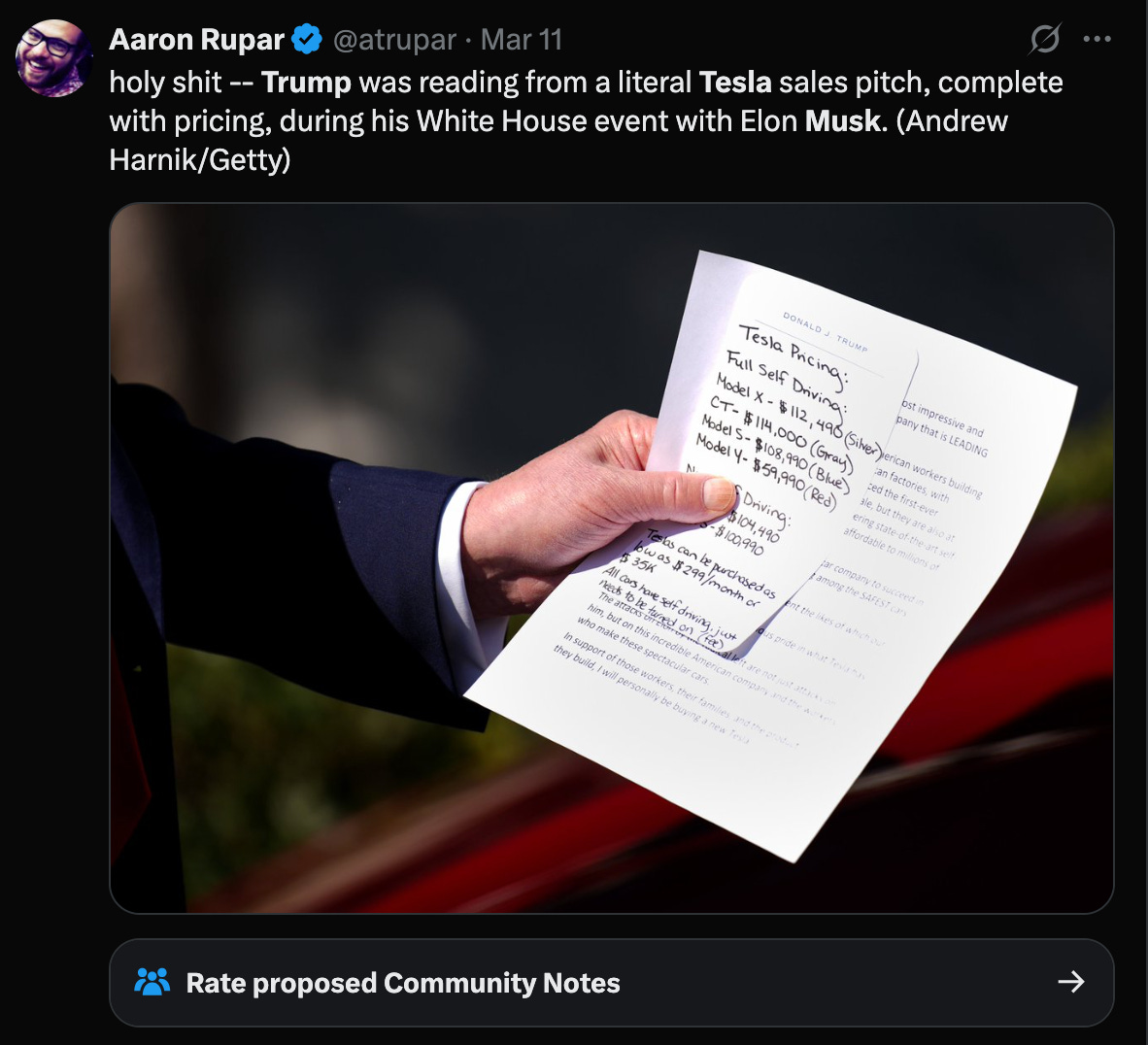 Trump turned the White House driveway into a car lot, plops into a red Model S with Elon riding shotgun, and starts reading a sales pitch—complete with pricing—off a damn script. “Beautiful!” he says, like he’s auditioning for QVC. Fox News cronies like Sean Hannity jump on the bandwagon, buying Teslas as a “gesture” of solidarity. It was part therapy session, part emergency PR stunt—Trump trying to prop up his biggest donor after Elon’s MAGA tears soaked the Oval Office carpet. The stock ticked up that day, sure, but it was a band-aid on a gunshot wound. Analysts like Dan Ives from Wedbush called it—Tesla’s a “political symbol of Trump and DOGE,” and that’s poison for a brand that used to sell eco-dreams to liberals.