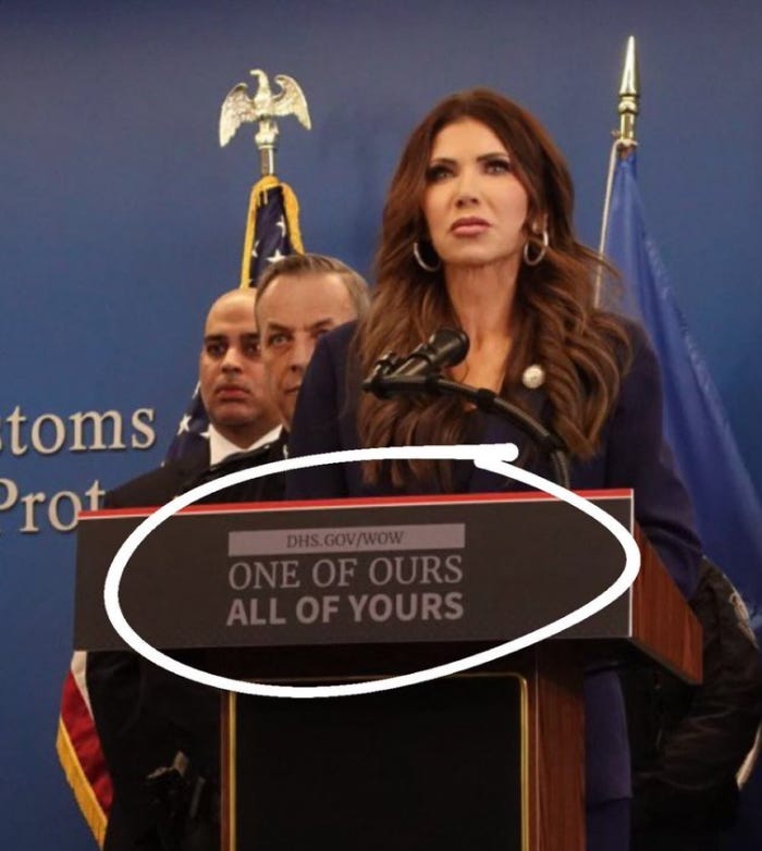 When Kristi Noem appeared at a recruitment press conference, the slogan attached to the lectern read: