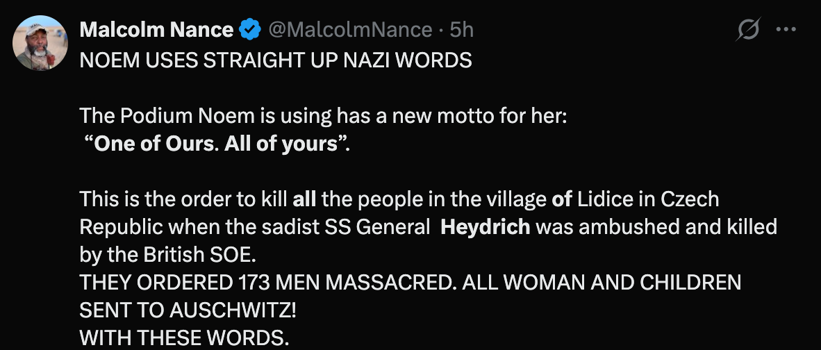 That phrase is historically linked to Nazi collective-punishment propaganda following the assassination of Reinhard Heydrich — used to justify mass reprisals against civilians.