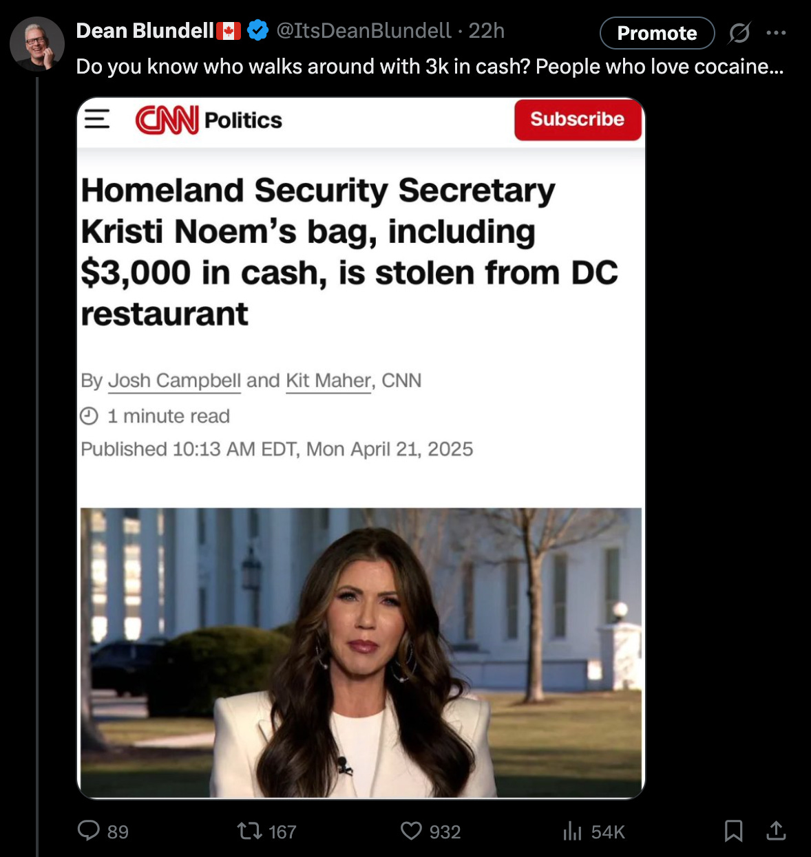 If there’s any truth to these whispers, it might explain why Noem was off her game that night. A steamy affair could make anyone forget where they parked their purse—or their security detail. Or maybe it’s all just juicy gossip. But in D.C., where coincidences are as rare as honest politicians, it’s hard not to connect the dots. Was she too busy with Corey to notice the “thief?” Was Cokehead Corey the thief? Or was Kristi Noem the subject of a honeypot sting where espionage met sex, met the theft of all of the personal effects of the director of homeland security?