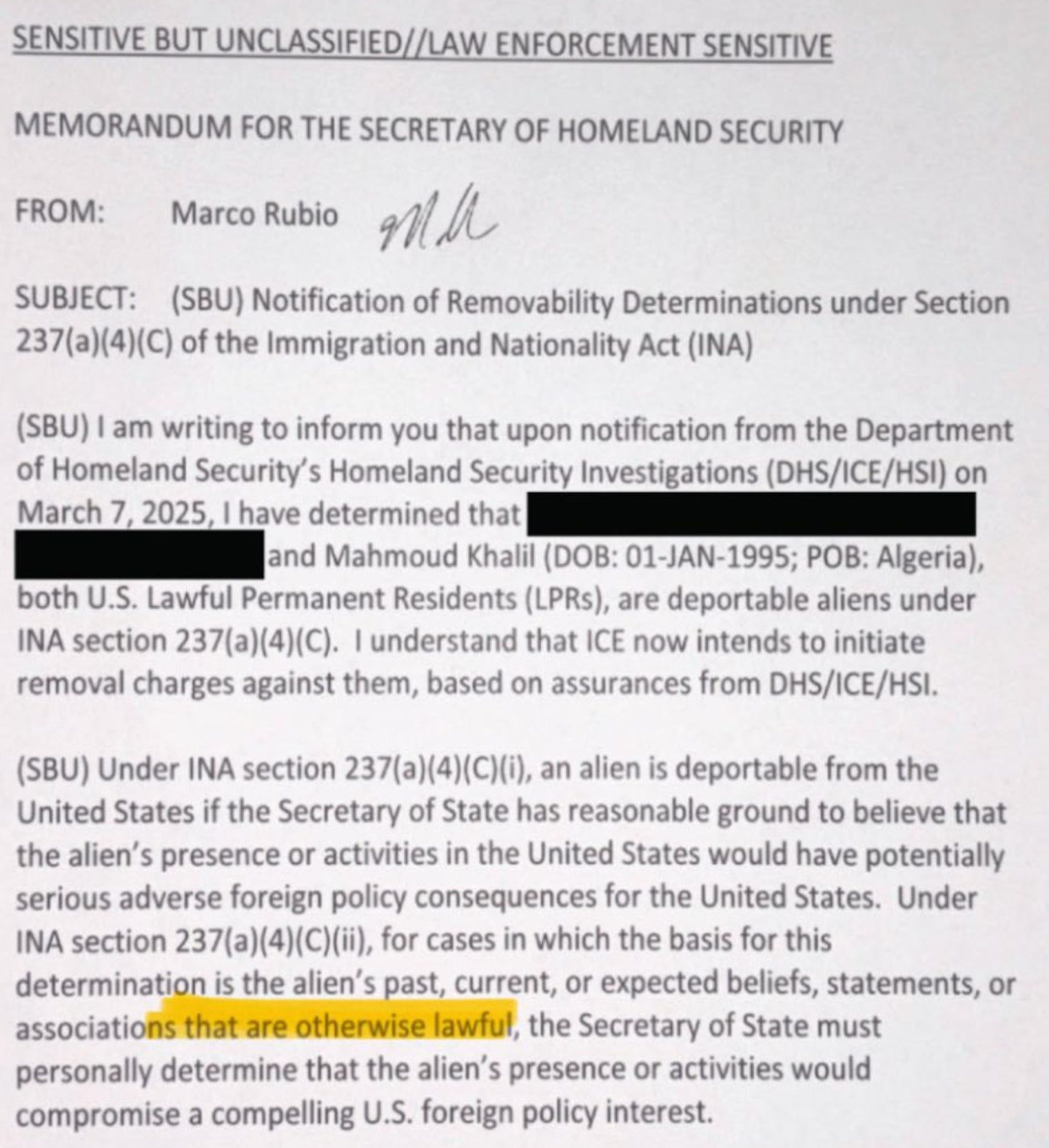 The memo leans on an obscure provision of the 1952 Immigration and Nationality Act, which allows the Secretary of State to flag individuals for deportation if their presence is deemed harmful to foreign policy. Legal experts argue this clause is vague and not intended to strip green card holders of their status without due process. Yet Rubio’s interpretation suggests otherwise, claiming Khalil’s activism—protected under the First Amendment—makes him deportable. This sets a precedent where anyone’s lawful speech or beliefs can be weaponized against them.