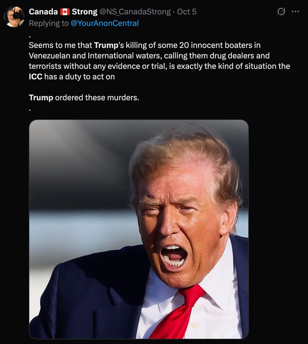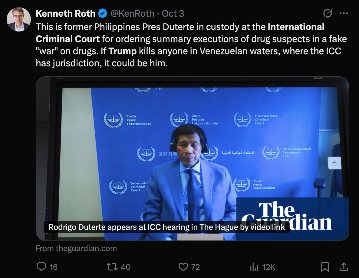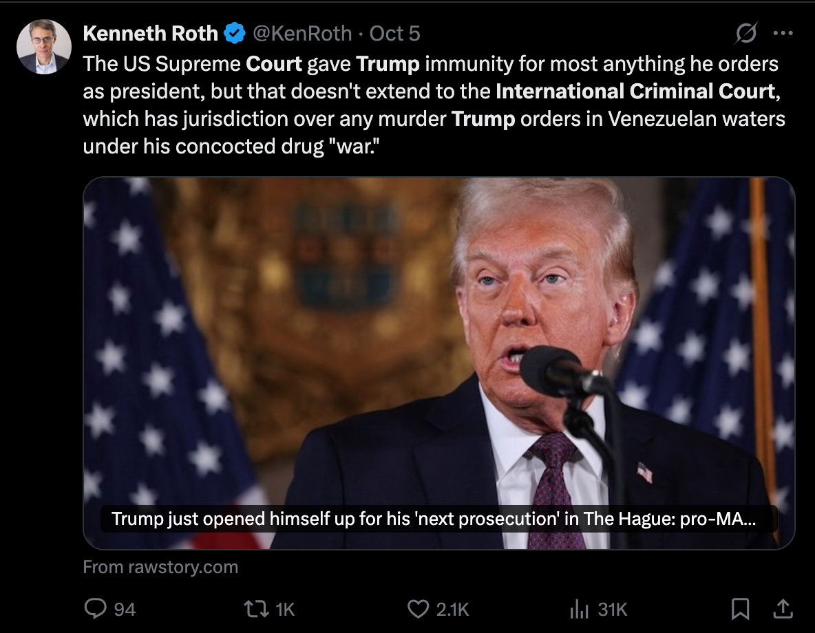 The ICC is considering charging Trump/Hegseth and others with "Extrajudicial Murder" of 21 Venezuelans