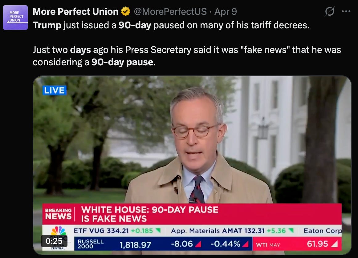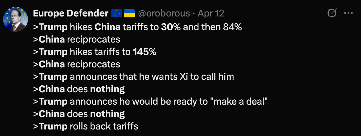 Trump blinked. Exemptions flowed. A 90-day delay was issued. And poof! “Liberation” became "Negotiation."